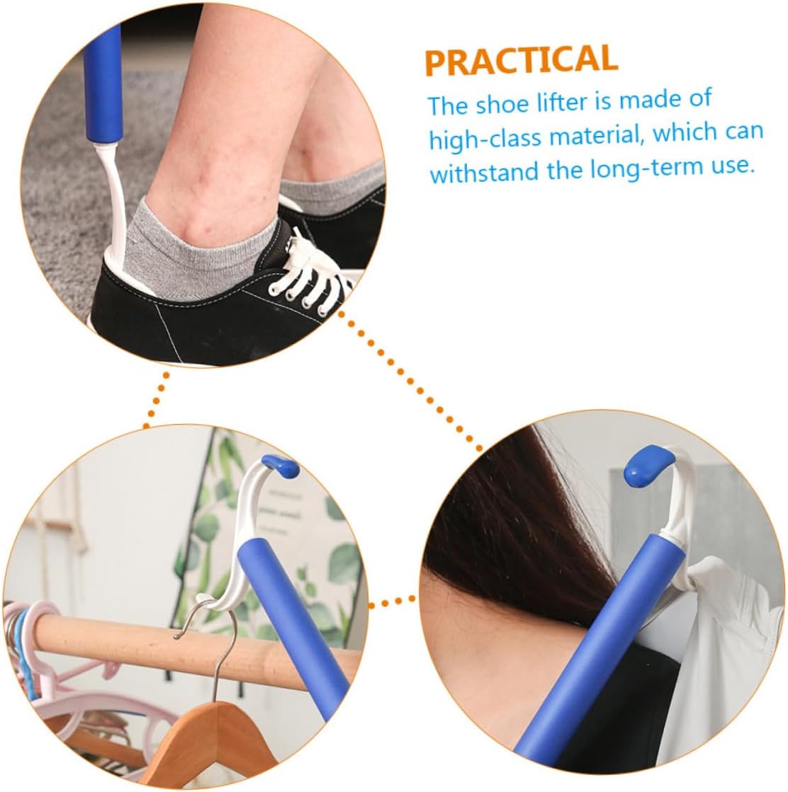 Package List 2 x dressing sticks Features -Material:ABS Shoe Lifter -Size:62.00X11.50X2.50cm/24.37X4.52X0.98in Dressing Aid Helper -Color:Multi elderly supplies -The shoe lifter is made of , which can withstand the long-term use dressing aid for shoes. -Dressing stick comes with a short design, which is portable and convenient for storage dressing aid for Disabled. -Rational bending radian can fit your foot heel and is convenient to use. Dressing stick is lightweight and portable, so it is easy and convenient to use Two-in-one Shoe Lifter. -Push end for push off a shirt, blouse, sweater or jacket. Suitable for disabled, elderly, pregnant, and more. Shoe Lifter -The convenient and shoehorn is a very elders and pregnant women Dressing Pole.Goods DescriptionTwo-in-one Dressing Stick Especially suitable for seniors or pregnant women who have difficulty in moving around.Plastic Dressing Stick It is designed for you to easily put on shoes while sitting or standing without excessive bending or twisting your back.Shoe Lifter It has a simple design, but very in use.elderly supplies This shoehorn is made of material which is and for long time use.Auxiliary Shoehorn Dressing aid stick