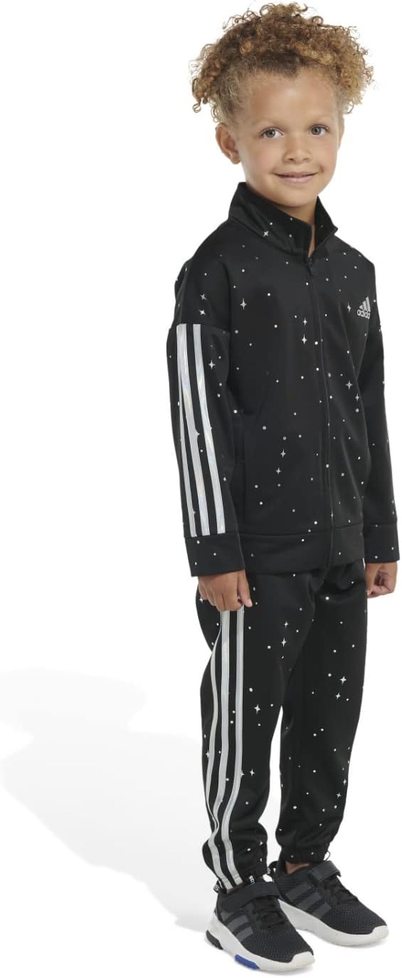 Two pieces, all adidas. This baby girls' track set dresses her up in fresh sporty style. It's made of smooth tricot fabric for an authentic look and feel.