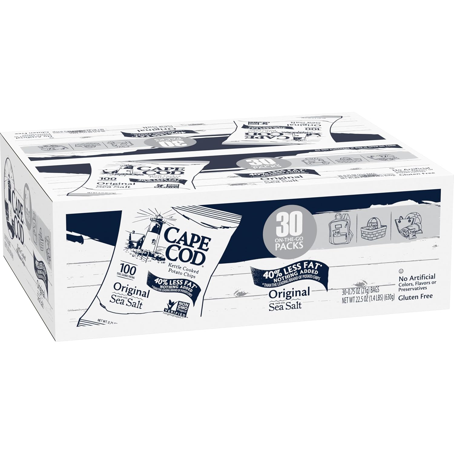 Item Type Name Cape Cod Potato Chips, Original Less Fat Kettle Cooked Chips, Snack Bags, 30 Ct