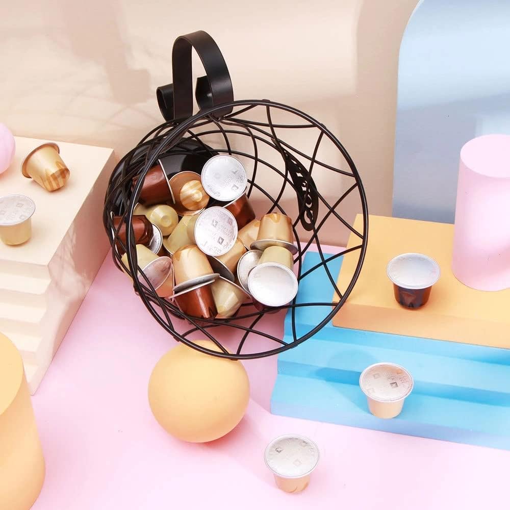 The lines are smooth, easy to take, and the touch is delicate and smooth.The wrought iron surface is painted, sturdy and .Because this coffee cup has a hollow structure, the objects will not be moldy, because it has good air circulation and is easy to dry.This basket can also be used to hold sugar bags, coffee mates, fruits, breads, biscuits, drinks or other items.Large storage space: Can provide enough space to hold your coffee capsules, 60 small coffee capsules or 40 large coffee capsules.Specification:Material: WireSize: 17.5x13.5cmnotes:Due to different displays and lighting effects, the actual color of the product may be slightly different from the color shown in the picture. Thanks!Due to manual measurement, please allow a measurement deviation of 1-3cm.Perfect for dining tables, coffee tables, dressers or any part of the home.