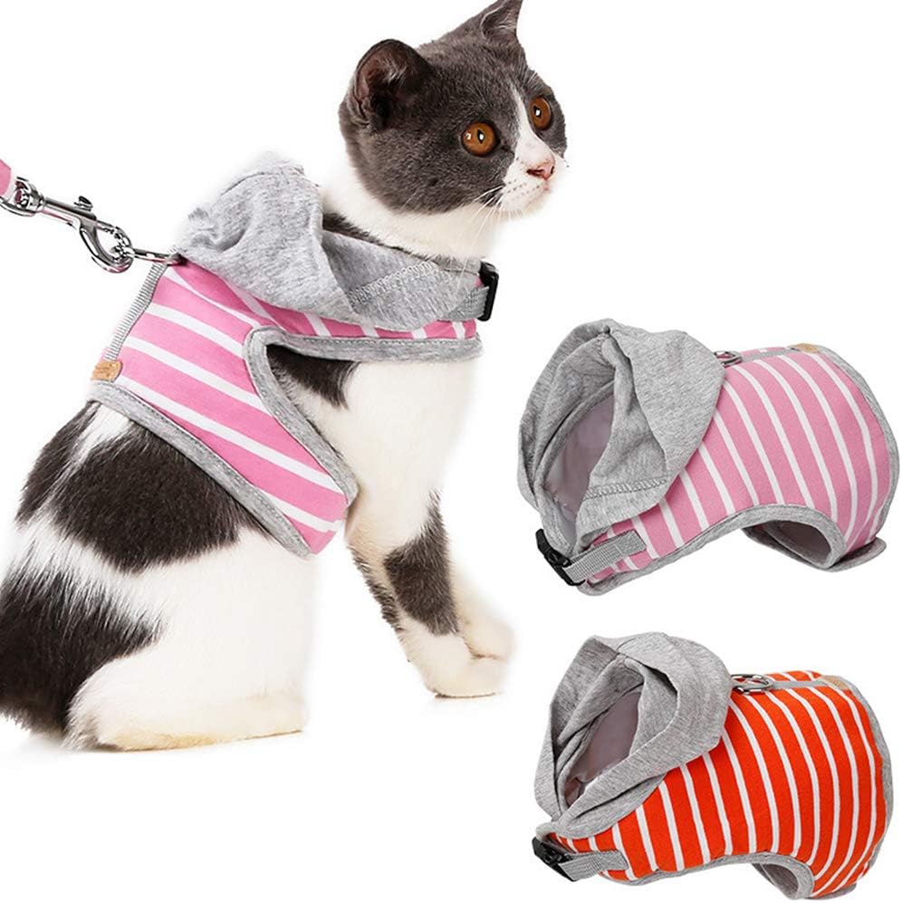Do you ever get the impression that your indoor cat longs to explore life beyond the windowsill? If so, a cat harness could be the perfect solution. Now your indoor cat can brave the great outdoors with this Harness.A cat harness can help keep your kitty safe when out and about, allowing her to get the best of both worlds. And with a little practice, walking your cat can be a highly rewarding experience for both of you.Specifications:Materials: Cotton + OxfordColors: Pink, OrangeFeature:1. Made of cotton cloth, soft and breathable. 5MM sponge padded to increase the softness and increase the wearing comfort of the pet.2. Oxford cloth lined, refreshing and breathable. It can be used in all seasons to reduce the troubles of the owner.3. Neck buckle + chest touch fastens for better adjust and fit the body, easy to wear, quick release.4. Striped pattern, hoodie design, fashion and adorable.5. A leash included in the package, matched with the harness vest.Sizing Chart: XS: Neck=26m/10.2", Chest=26-34m/10.2"-13.4"S: Neck=30cm/11.8", Chest=32-40cm/12.6"-15.7"NOTE: Pls note the above sizing information, and select the right size. Pls measure your pet's chest and neck before purchasing.Packing list: 1 x Cat Harness1 x Cat leash