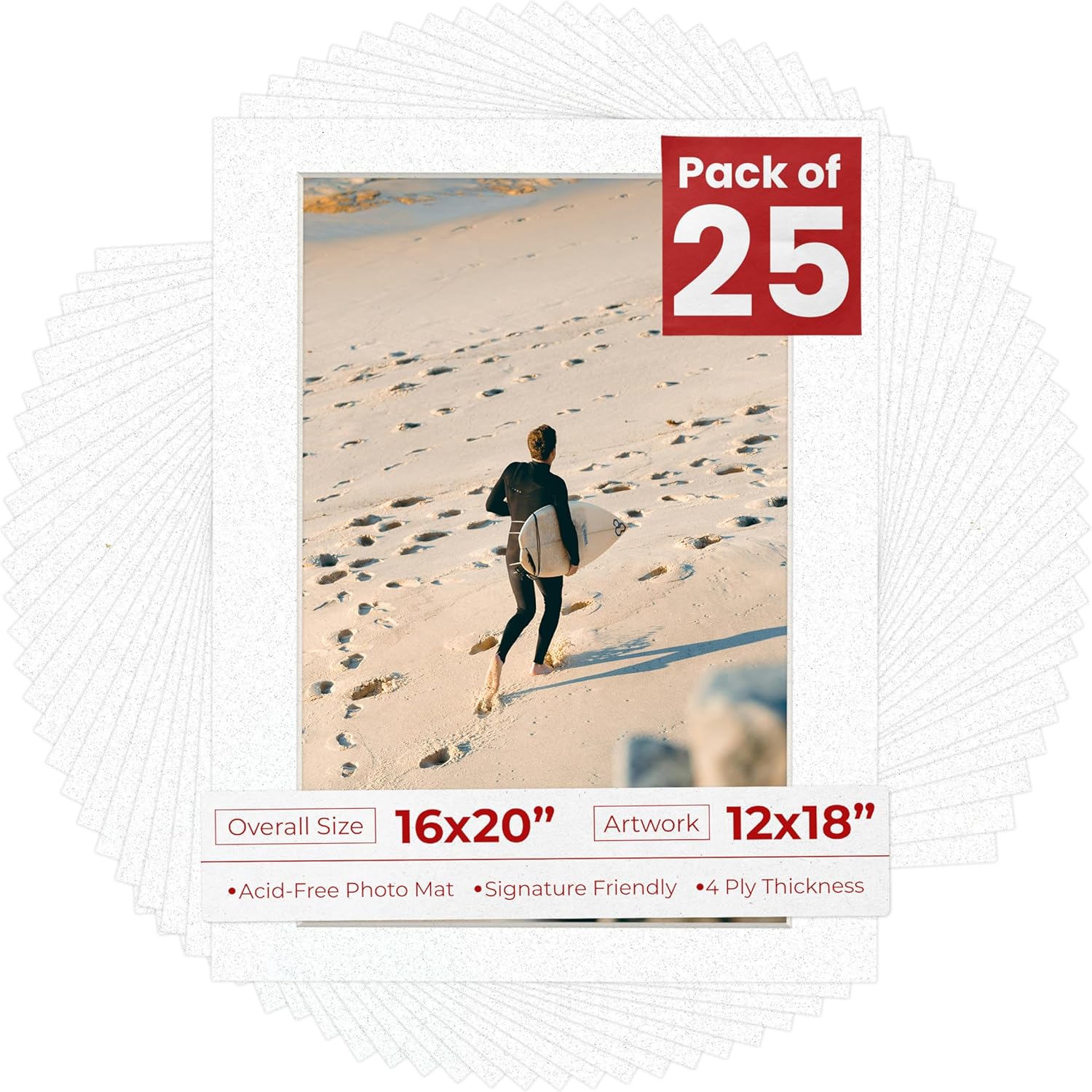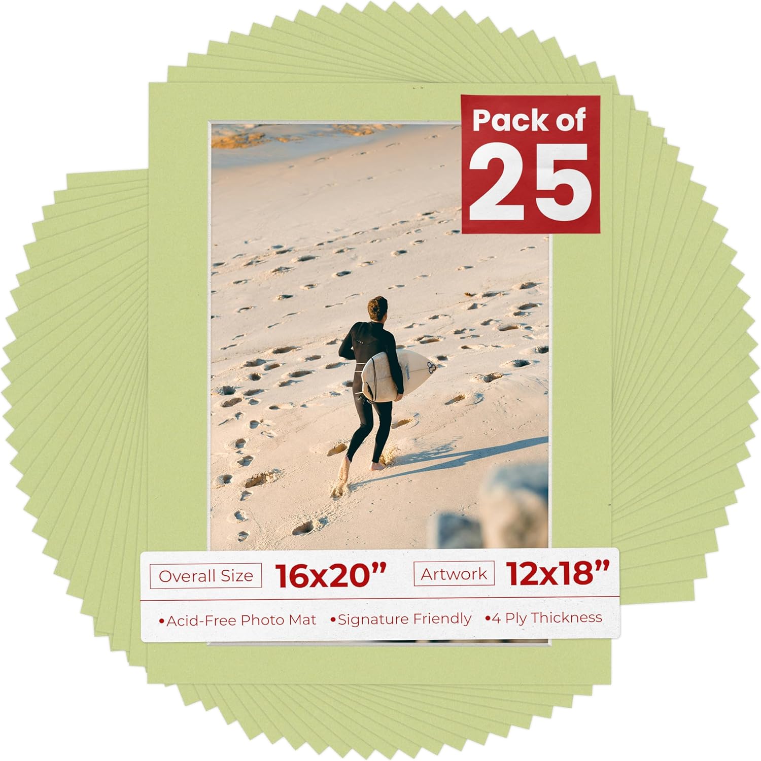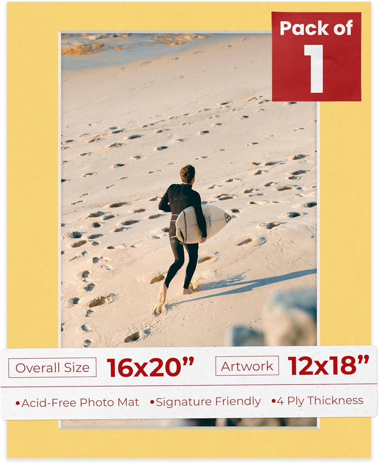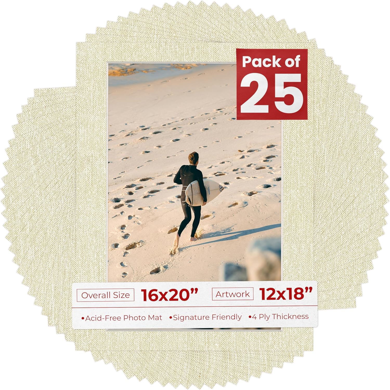 One Single Mat Without Backing Or Mat Bag, Featuring A Picture Opening For A 12X18 Inch Photo, To Fit In A 16X20 Inch Picture Frame. Photo Openings Are Beveled Cut 0.5" Smaller Than The Art Size Advertised To Overlap The Photo And Help Keep It Securely In The Frame. Made To Display A 12X18 Photo And Fit In A Standard 16X20 Picture Frame. Vibrant Fresh Linen Canvas Color Acid Free Picture Matting. Great Replacement For Damaged, Dirty, Or faded Matting In Your Old Frames. Premium Quality: Our Precut Photo Matboards Are Acid Free & Precision Cut With A 45 Degree Bevel By Machine For Perfect Corners And No Over-Cuts Every Single Time. Precut Acid-Free, Professionally Bevel Cut Matte Board. Custom Frame Shop And Archival Quality. All Of Our Precut Matboards Are Manufactured In The Usa.