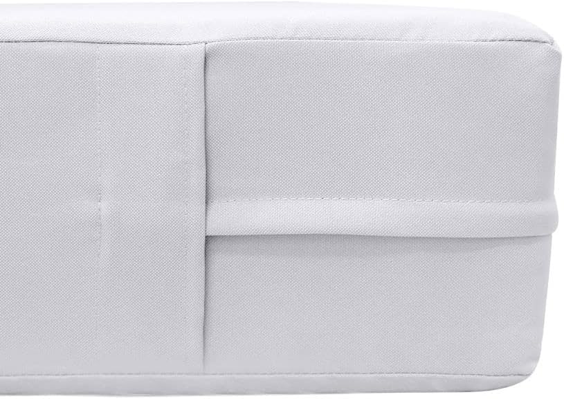 - S5 Crib Size Knife Edge Outdoor Daybed Mattress Bolster Insert and Cover Complete Set AD105- Premium Foam Mattress- Foam Density: (D30) 1.8 PCF High-Densityand Dacron Wrap- 3-Layers Foam Mattress:Foam + Fiberfill + Dacron Wrap:- 1 x High-Density Mattress Foam and Cover : 52" x 28" x 6"- 3-Layers Pillow Insert:Polyester Fiberfill + Fiber Warp + Dacron Wrap- 2 x Bolster Pillow Cover and Insert: 26" x 8"- * 1500 Gram Fiberfill Per Bolster- Color: AD105- Edge Trim: Knife Edge- - Packaging: VacuumPacked- - Fabric: 230 Gram Polyester Upholstery- Water Repellent *Not Water Proof*- Hidden Zipper- Allow 48 hours to restore back to original thickness afteropening package- Covers and Inserts are packed individually *assemblingrequired*- Tips: Please cover or store cushion pillow in rainy season- Cleaning: Soap clean and rinse off with water hose. Outdoor durable!- Qty: 1